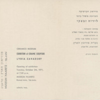 לידיה זבצקי, תערוכת פיסול קרמי, מוזיאון ארץ ישראל (תל אביב), 1971 (1971)