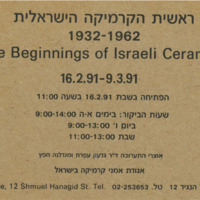 ראשית הקרמיקה הישראלית 1932-1962, בית האומנים (ירושלים), 1991 (1991)