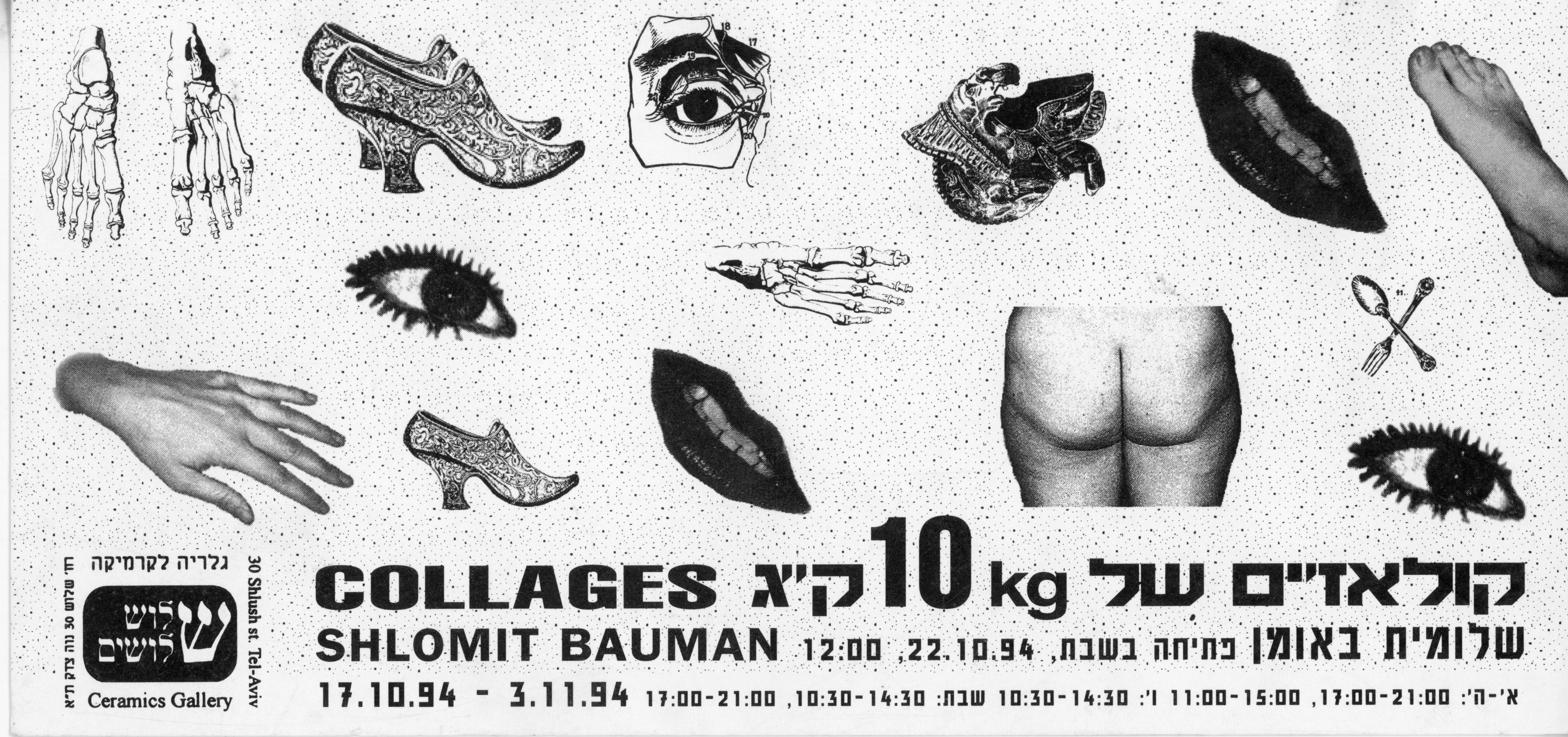 קולאז'ים של 10 קג, שלומית באומן, תערוכת יחיד, שלוש שלושים - גלריה לקרמיקה, 1994"