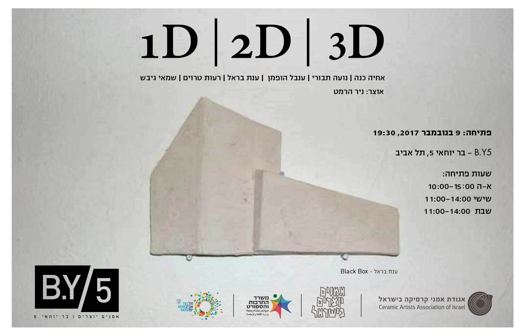 הזמנה לתערוכה 1D | 2D | 3D, תערוכה קבוצתית, גלריה B.Y5, 2017