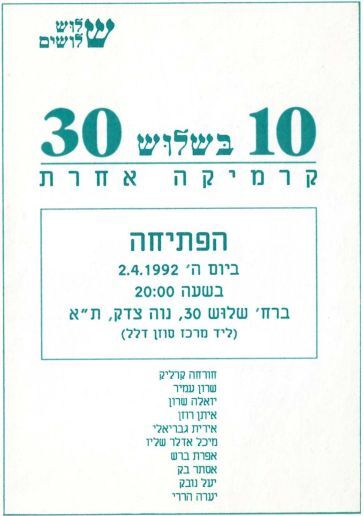 הזמנה, 10 בשלוש 30, תערוכה קבוצתית, שלוש שלושים - גלריה לקרמיקה, 1992