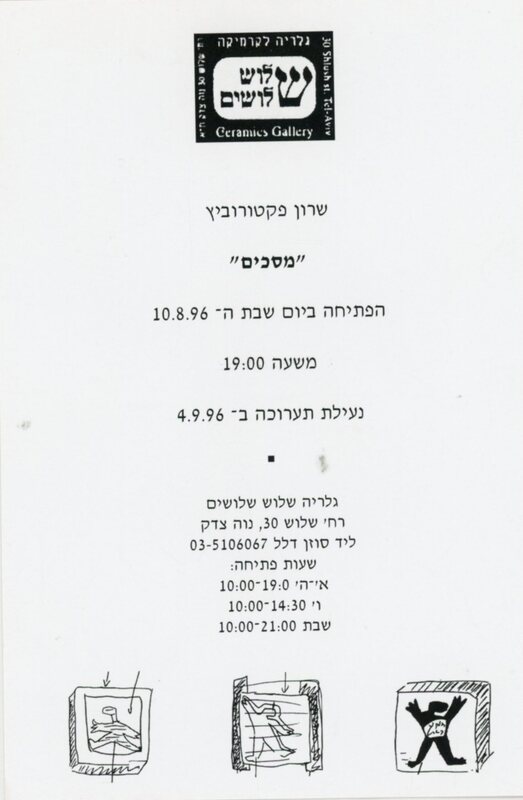 הזמנה, מסכים, שרון פקטורוביץ', תערוכת יחיד, שלוש שלושים - גלריה לקרמיקה, 1996