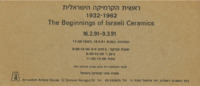 הזמנה, ראשית הקרמיקה הישראלית 1932-1962, בית האומנים (ירושלים), 1991