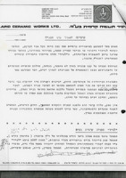 הסכם פרישה בין נחמיה עזז ומפעל חרסה על שימוש בעיצובים שלו לאחר עזיבתו את המפעל. באדיבות משפחת עזז