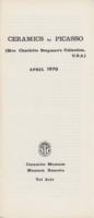 קטלוג, Ceramics by Picasso, מוזיאון ארץ ישראל (תל אביב), 1970